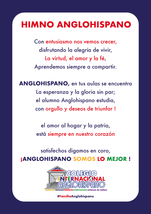 QUIENES SOMOS NUESTRA HISTORIA INSTALACIONES PLATAFORMA ESTRATÉGICA MANUAL DE CONVIVENCIA SÍMBOLOS Descubre los símbolos del Colegio Internacional Anglohispano, emblemas que representan nuestra identidad institucional. Isotipo Imagotipo Bandera Himno